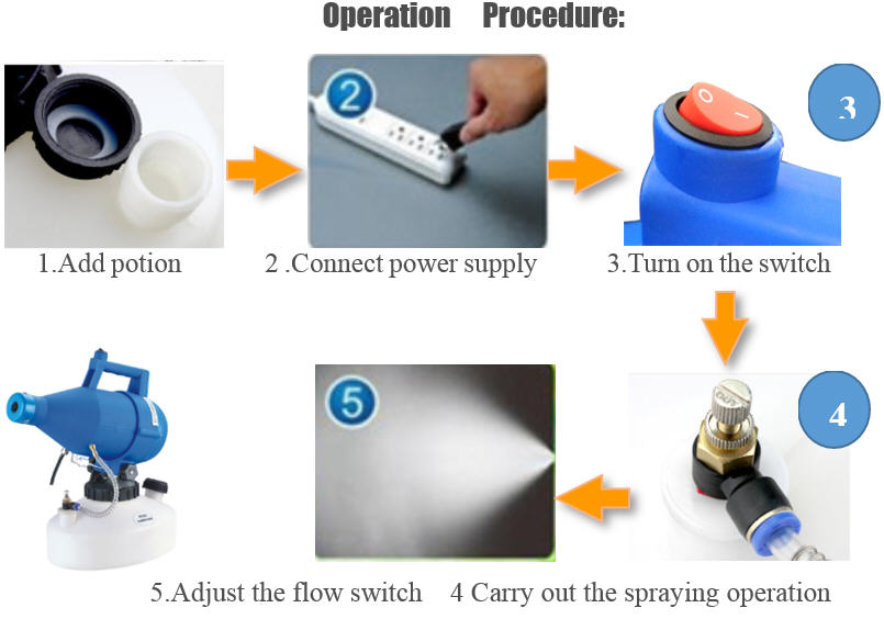 After the operation is finished, the left potion should be poured out, then adding cleaning spray for 2-3 minutes